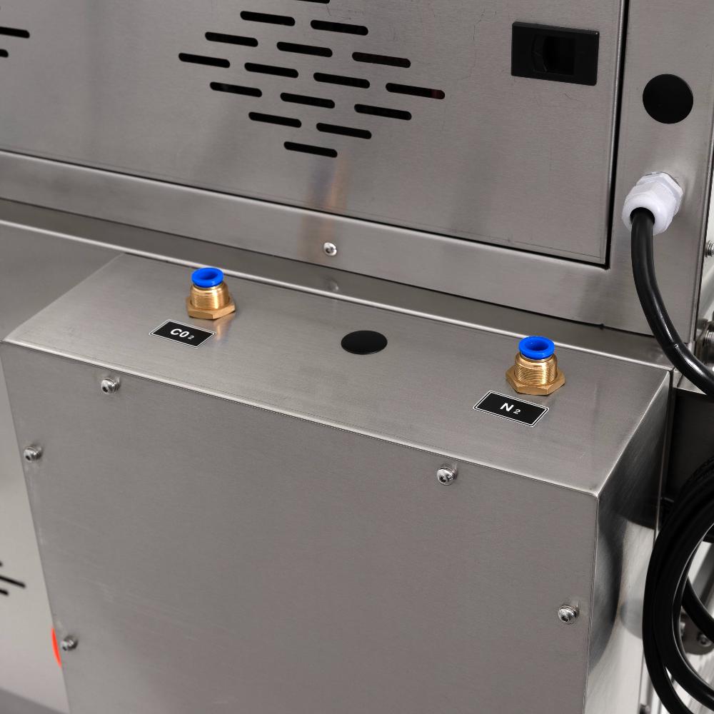- Комбинированная технология вакуумной газации – удаление воздуха и последующее замещение инертным газом (азотом или газовой смесью) обеспечивает максимальную защиту от окисления, подавляет рост бактерий и значительно продлевает срок хранения продуктов, сохраняя их свежесть и товарный вид.