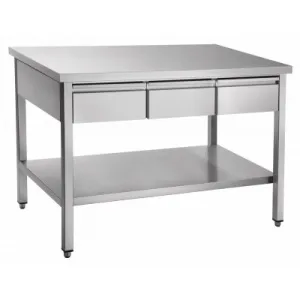 Стол с выдвижными ящиками СТН-7-1 используется на предприятиях общественного питания как вспомогательное оборудование. В cтоле с выдвижными ящиками СТН-7-1 можно хранить кухонную утварь, а также продукты питания в индивидуальной упаковке: крупы, приправы, кофе, макаронные изделия.