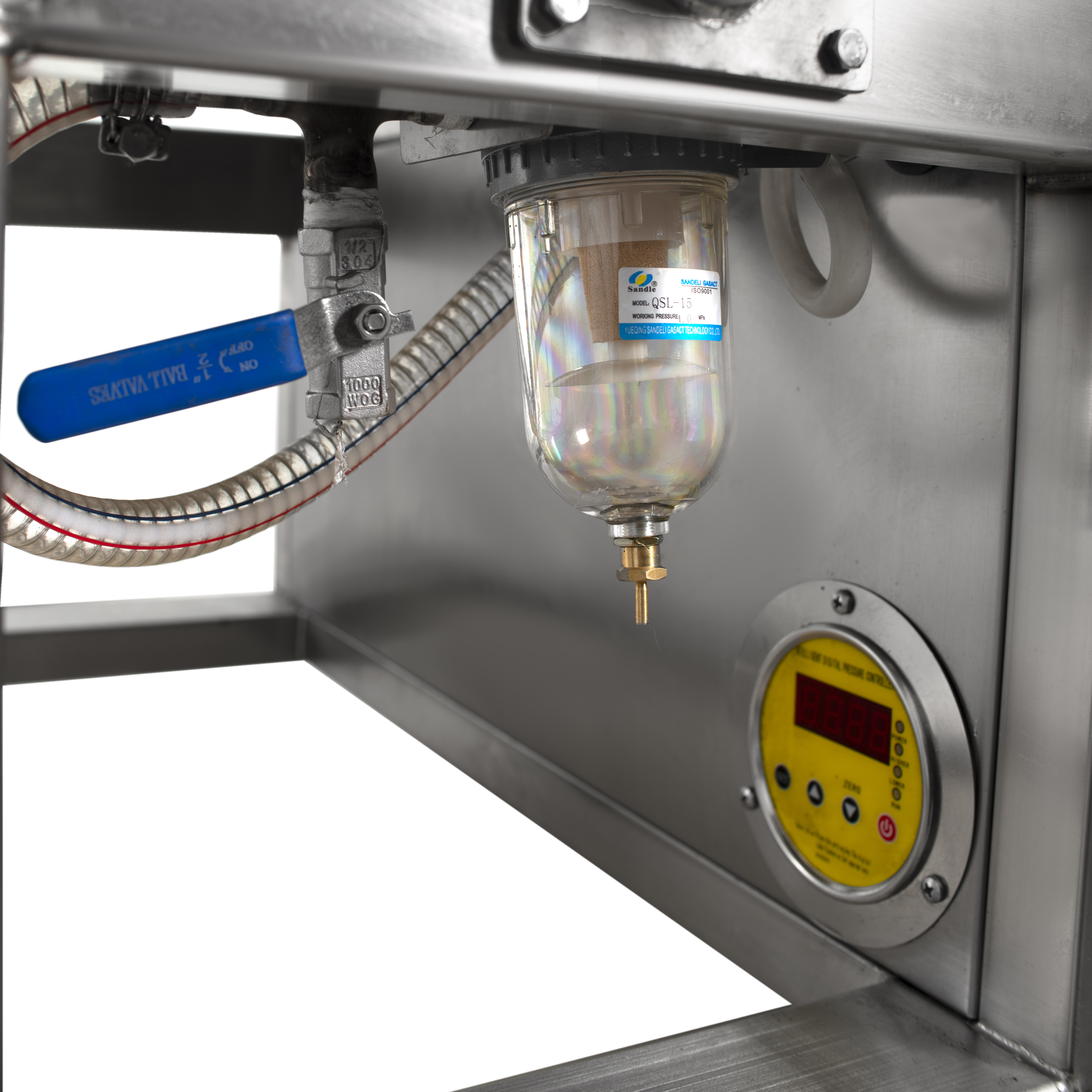 - Простота использования. Устройство имеет интуитивно понятный интерфейс и легко моется после использования. Оператор может регулировать скорость в настройках системы с учетом особенностей и объема перерабатываемой продукции. Для избежания экстренных ситуаций предусмотрена конструкция защиты персонала.