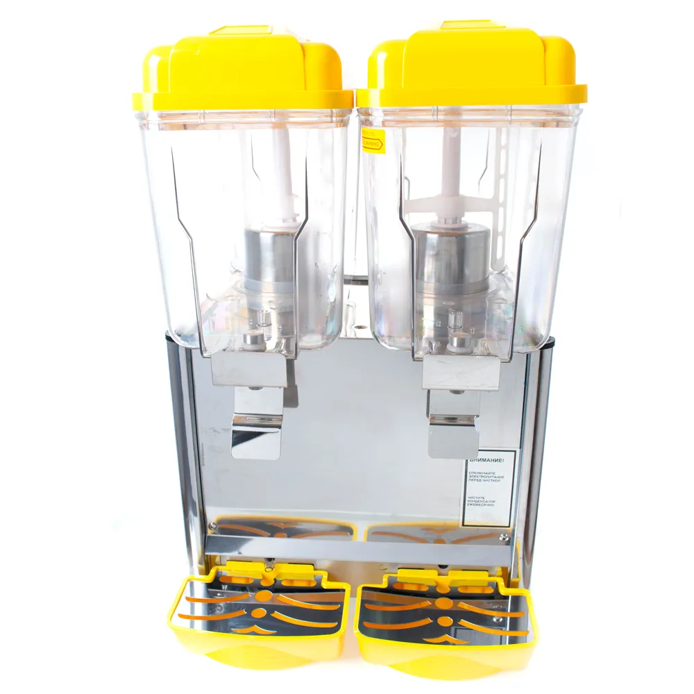 Предназначенные для напитков стеклянные ёмкости закрываются пластмассовыми крышками. Они, как и фигурные краники, привлекают дополнительное внимание к сокоохладителю.