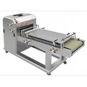 Тестовая заготовка шарообразной формы поступает в приемный бункер, снабженный защитным блокирующим устройством и устройством центровки тестовых заготовок, затем раскатывается в блин заданной толщины двумя парами раскатных валков.